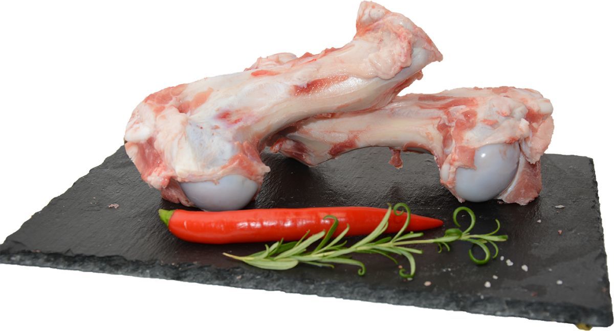 Kości rurkowe wycięte z szynki, z rzepką lub bez, z małymi pozostałościami mięsa. Polecane na wywar.. Kości rurkowe wycięte z łopatki z dwoma końcówkami chrząstki stawowej usytuowanymi po przeciwnych stronach kości i pozostałościami mięsa z łopatki.